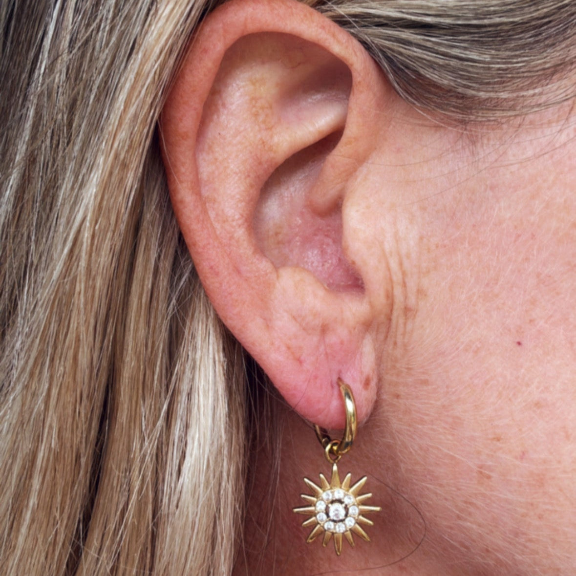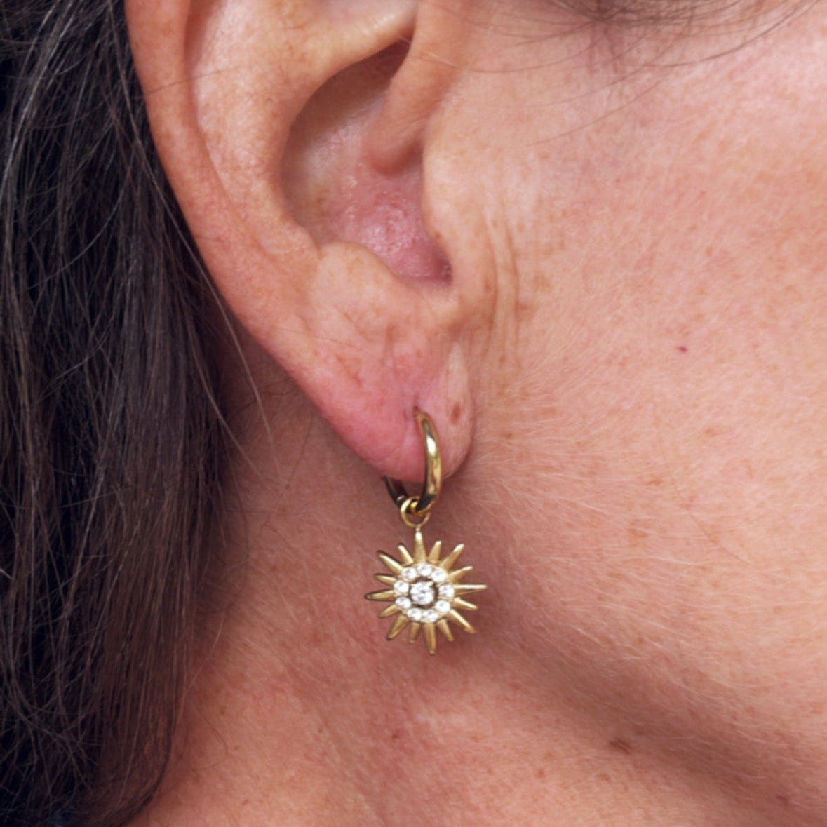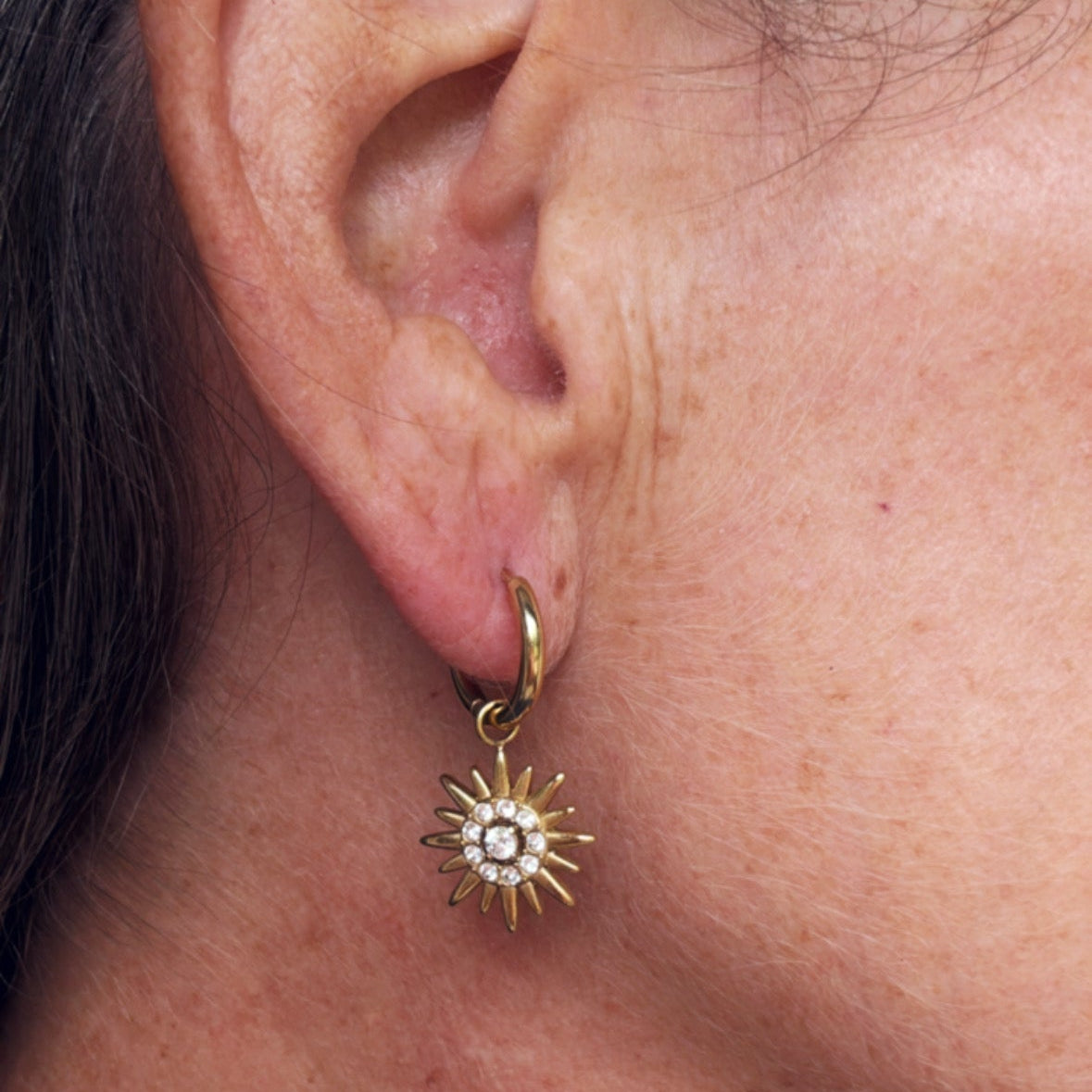 Small Hoops ( 1.5cm ) with sparkling sun charms ( 1.5cm drop ) £22